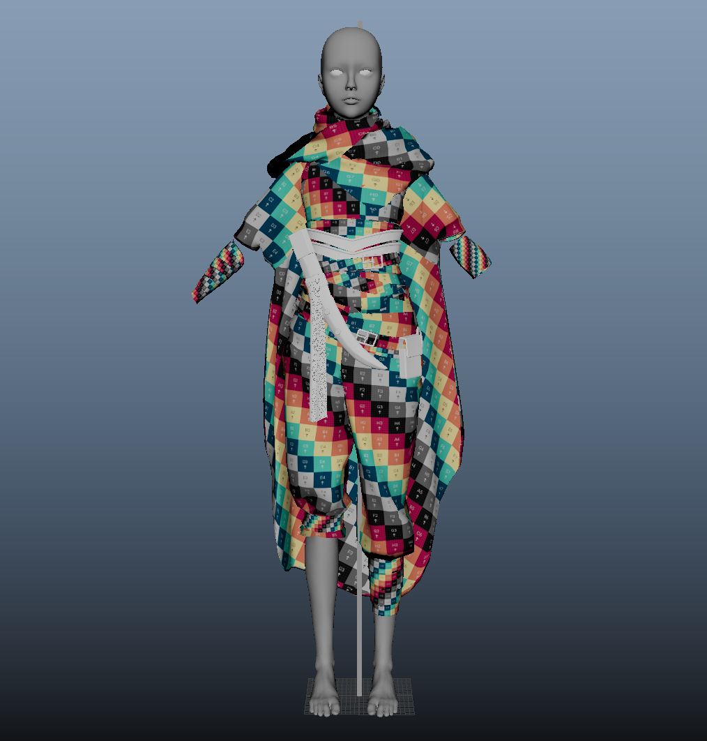 A big challenge I faced with this character was the implications of how complex and dense the cloth was. I decided against traditional retopology for certain pieces of complex cloth and instead imported Marvelous designer UVs into maya and transferred attributes from the 2D arrangement to the 3D position using vertex positions and UV sets.